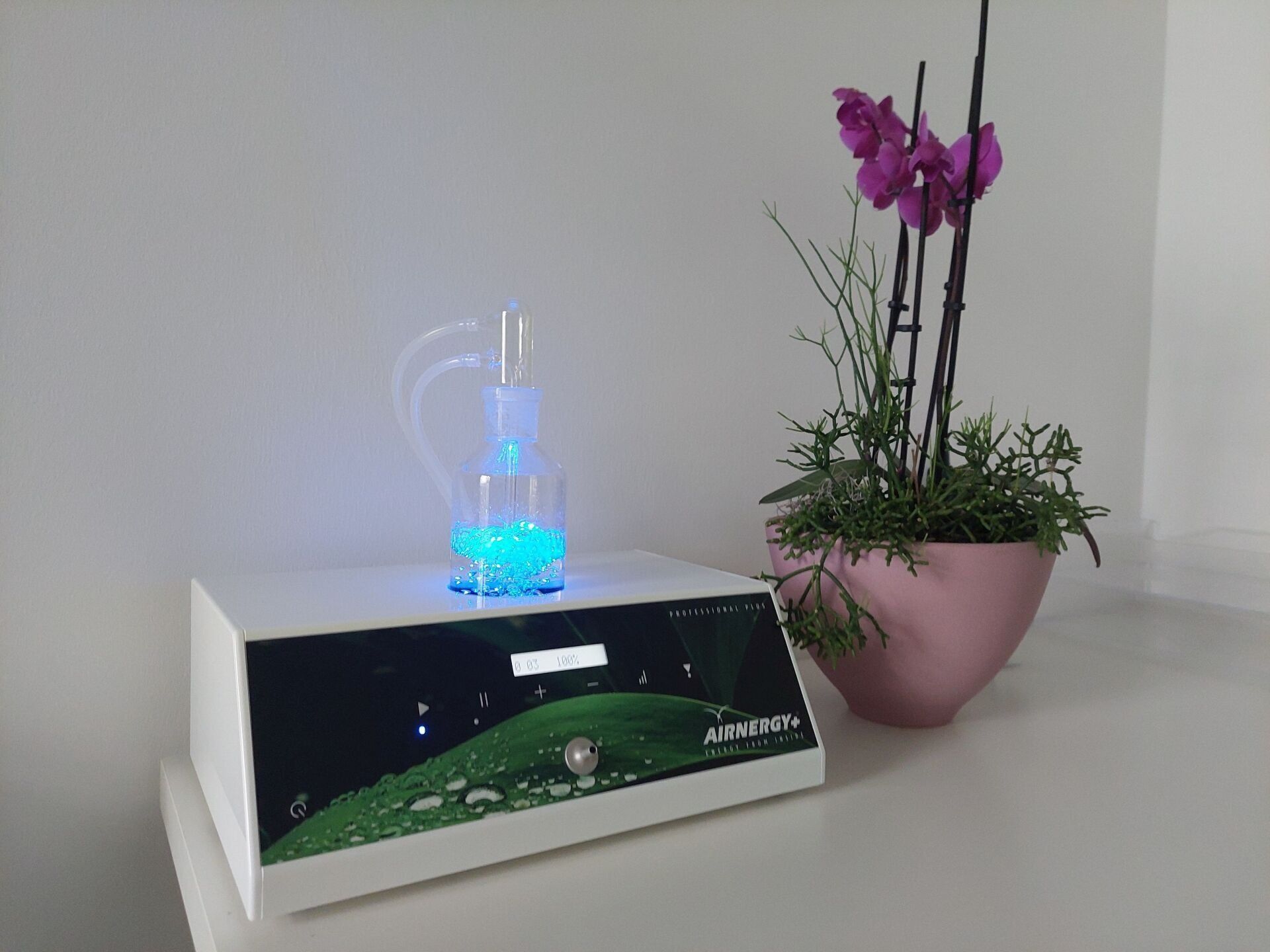 Inhalation von aufbereiteter Atemluft. Diese fördert unsere Konzentration und Denkfähigkeit und sie reguliert An- und Entspannung unseres Nervensystems.